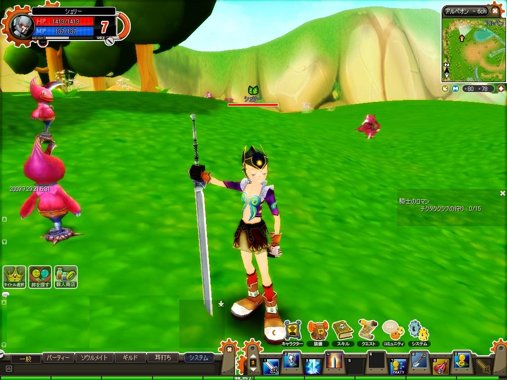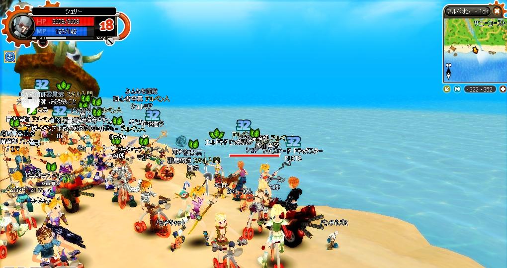 まだ梅雨開けませんねー そんな中cβ最終日はイベントが あったので参加してきました。 中身はよくわかりませんでしたが、GMに付いて走っただけw 早く走るためにGMが露天を出し3コインで乗り物販売。 (全部三輪車だった。。。だから3なのかなw?) 最終日に至るまでにもどこかのチャンネルでGMが販売していた らしく色々な乗り物を乗ってる人たちもおりました。 みんな露天で乗り物かったらさぁ移動! みんなで海にきました。 後々、ここで釣りが できるようになるとの 案内でおわり!?何?また戻れだって・・・